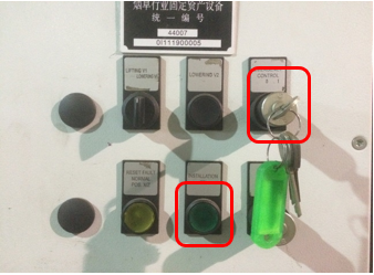 用标有“10”的钥匙插上上面的钥匙开关并打到“1”位,按下绿色按钮启动堆垛机