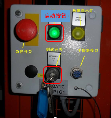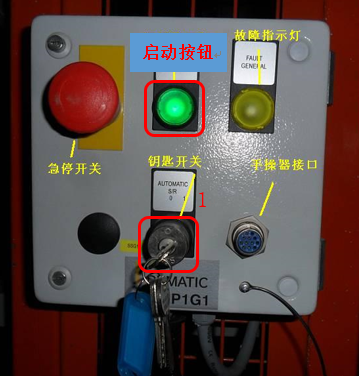 9)插上钥匙,钥匙开关打到“1”位置,并按下启动按钮